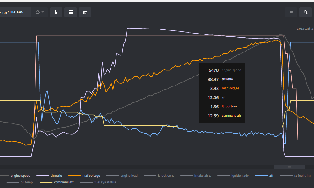 | E85 | Tactrix | 11.9 - 12.1 | 11.9 - 12.1 | "Default" | Do nothing |